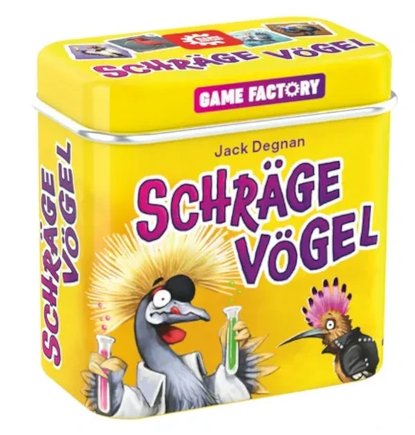 Schräge Vögel von Jack Degnan, Illustration: Michael Menzel, Game Factory, 2 bis 5 Spieler ab 8 J., ca. 15 Min., ca. 5 €, gamefactory-games.com