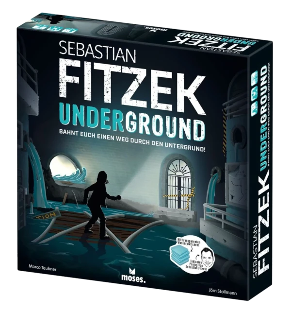 Sebastian Fitzek Underground, Szenischer Ansatz: Sebastian Fitzek, Autor: Marco Teubner, Artwork: Jörn Stollmann und Andrea Köhrsen, Redaktion: Tobias Weierstraß und Kaddy Arendt, Moses, 1 bis 4 Spieler ab 12 J., ca. 45 Min., ca. 35 €, moses-verlag.de