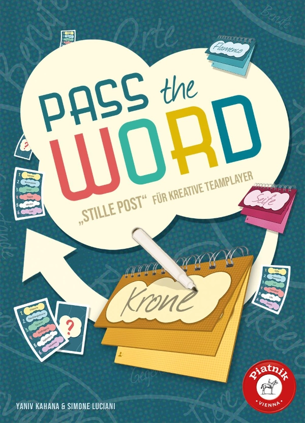 Pass the Word von Yaniv Kahana, Illu: Felix Wermke, Piatnik, 4 – 8 Sp. ab 10 J., ca. 20 Min., ca. 18 €, piatnik.com