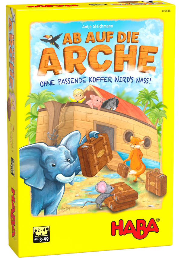 Ab auf die Arche von Antje Gleichmann bei HABA, Grafik von Benjamin Petzold, 2 bis 4 Spieler ab 3 Jahren, ca. 15 Minuten, ca. 12 €
