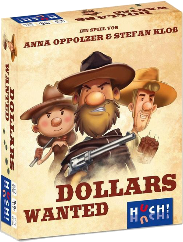 Dollars Wanted von Anna Oppolzer und Stefan Kloß, Huch, 2 bis 5 Spieler ab 7 J., ca. 20 Min., ca. 8 $ (falsch: natürlich Euro!), hutter-trade.com
