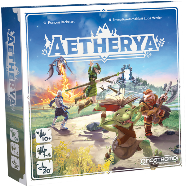 Aetherya von Franois Bachelart bei Nostromo, Vertrieb Huch!, Grafik von Emma Rakotomalala und Lucie Mercier, 1 bis 4 Spieler ab 10 Jahren, ca. 20 Minuten, ca. 32 Euro