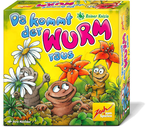 Da kommt der Wurm raus von Reiner Knizia bei Zoch, Grafik von Doris Matthäus, 2 bis 5 Spieler ab 5 Jahren, ca. 20 Minuten, ca. 14 €