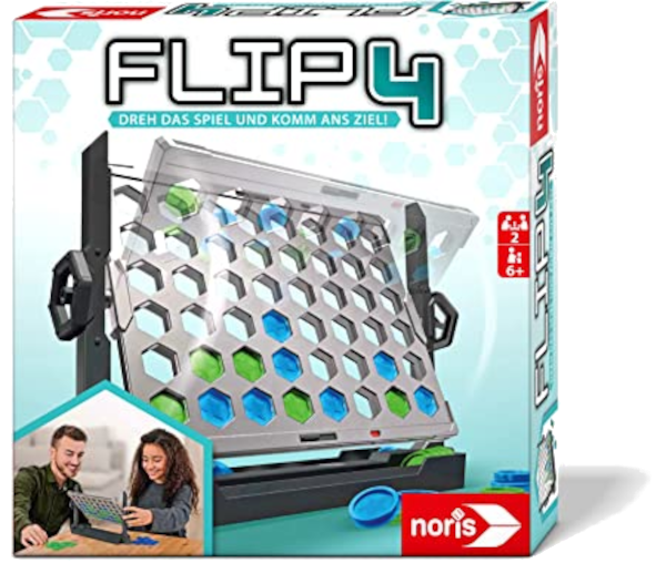 Flip4 bei Noris, 2 Spieler ab 6 Jahren, ca. 10 Minuten, ca. 20 €