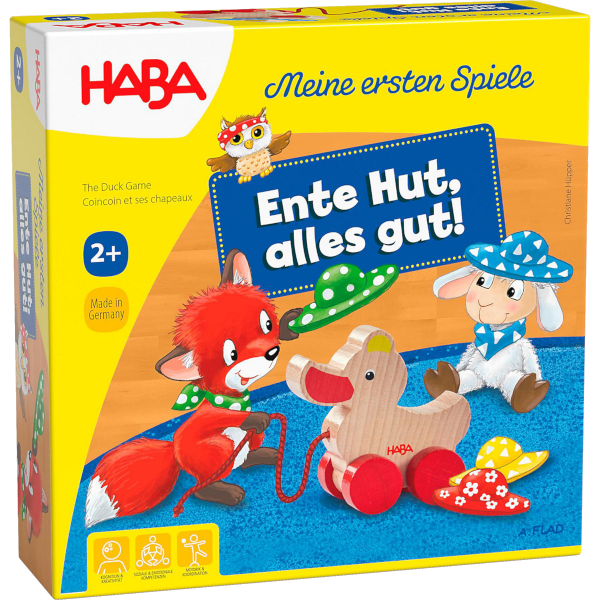 Ente Hut, alles gut! von Christiane Hüpper bei Haba, Grafik von Antje Flad, 1 bis 4 Spieler ab 2 Jahren, ca. 10 Minuten, ca. 25 Euro