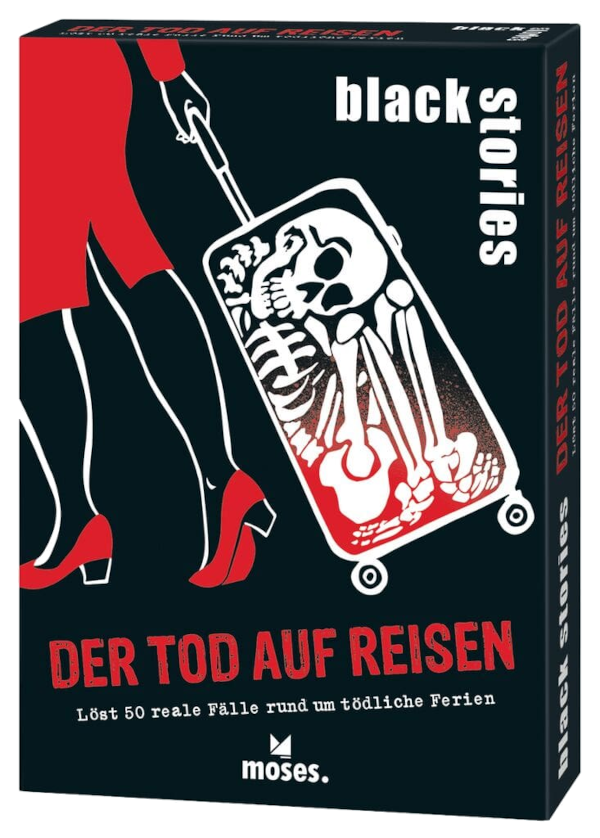 Seit Jahren bringt der Moses-Verlag immer wieder neue Varianten dieser makaber-vergnüglichen Unterhaltung als ‚black stories‘ auf den Markt. Oster-, Pfingst- und Sommerferien liegen vor uns. Die damit verbundenen Ortwechsel und Reisen bieten reichlich Anlass, das einschlägige Themen-Schächtelchen mit in den Urlaub zu nehmen.