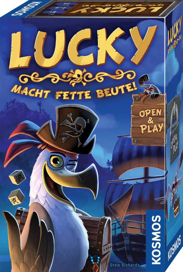 Lucky macht fette Beute von Drew Richards, Gestaltung: Cyril Jedor und Atelier 198, Kosmos, 2 bis 6 Spieler (besser mehr als 2!) ab 8 J., ca. 25 Min., ca. 15 €, kosmos.de