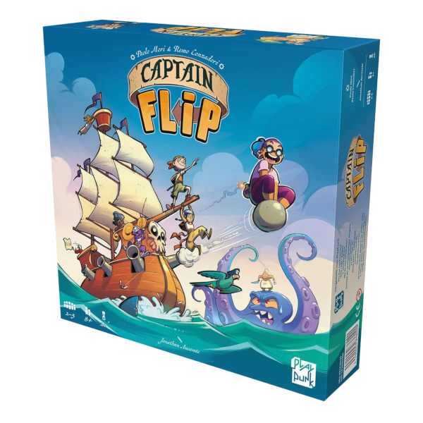Captain Flip von Paolo Mori und Remo Conzadori, Graphik: Jonathan Aucompte, Nominiert zum Spiel des Jahres, PlayPunk, Vertrieb Asmodee, 2 bis 5 Spieler ab 8 J., ca. 20 Min., ca 27 €, asmodee.de