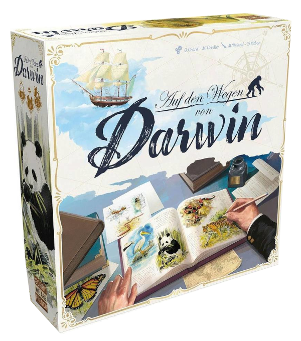 Auf den Wegen von Darwin von Gregory Grard und Matthieu Verdier, ausgezeichnete Illustration: David Sitbon und Maud Briand, nominiert zum Spiel des Jahres, Verlag: Sorry we are French, Vertrieb Asmodee, 2 bis 5 Spieler ab 8 J., ca. 30 Min., ca. 35 €, asmodee.de