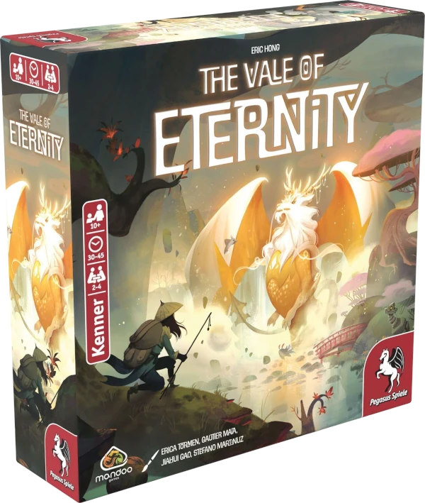 The Vale of Eternity von Eric Hong, Illustrationen: Erica Tormen, Gautier Mata, Jiahui Gao und Stefano Martinez, Mandoo-Games, Vertrieb Pegasus, 2 bis 4 Spieler ab 10 J., ca. 30 bis 45 Min., ca. 24 €, pegasus.de